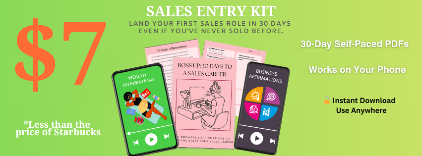 This is your 30-day glow-up blueprint for launching a sales career that actually feels aligned. You’ll walk through daily journal prompts, affirmations, and mindset exercises designed to help you finally believe in yourself, pitch yourself, and boss up in your career.